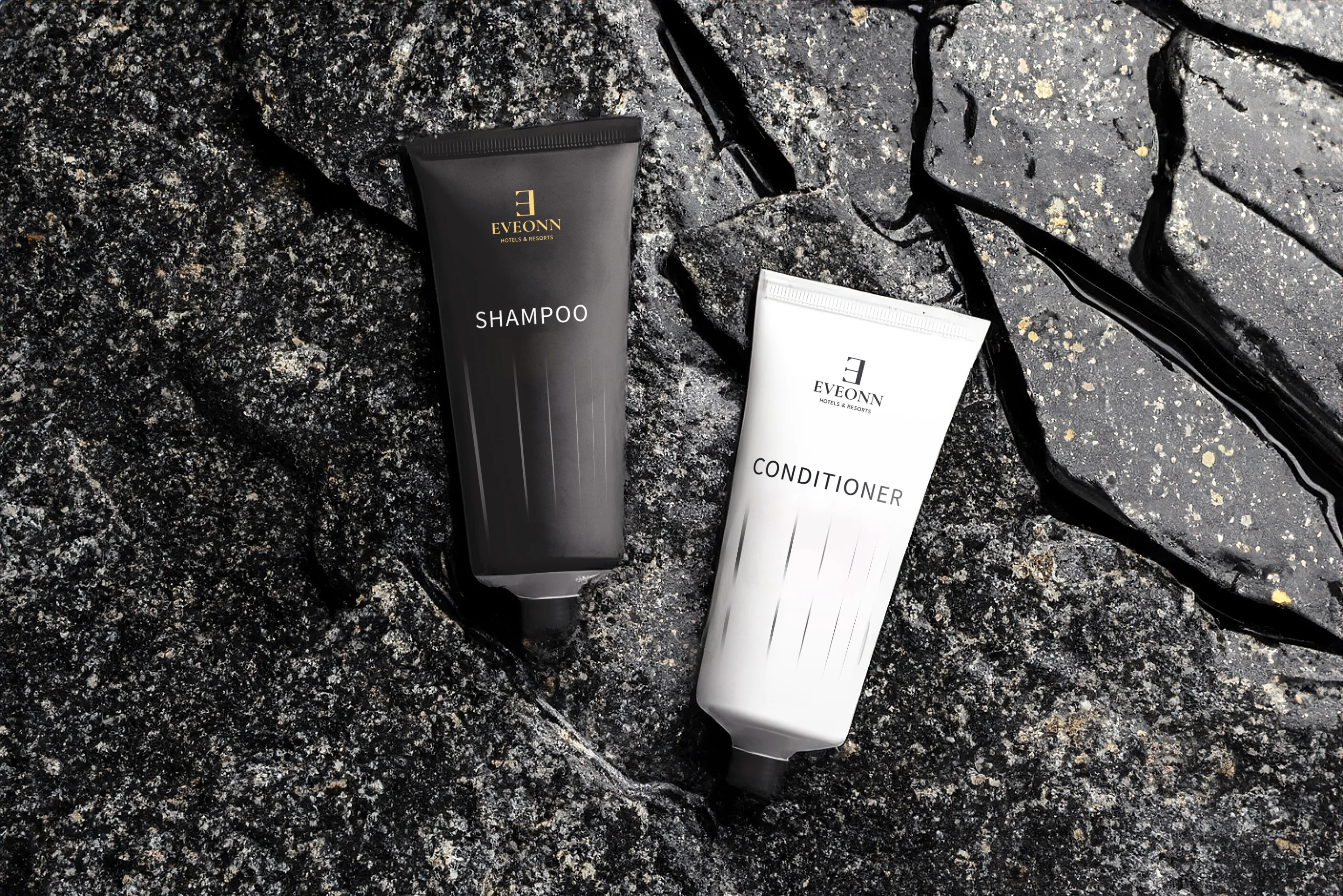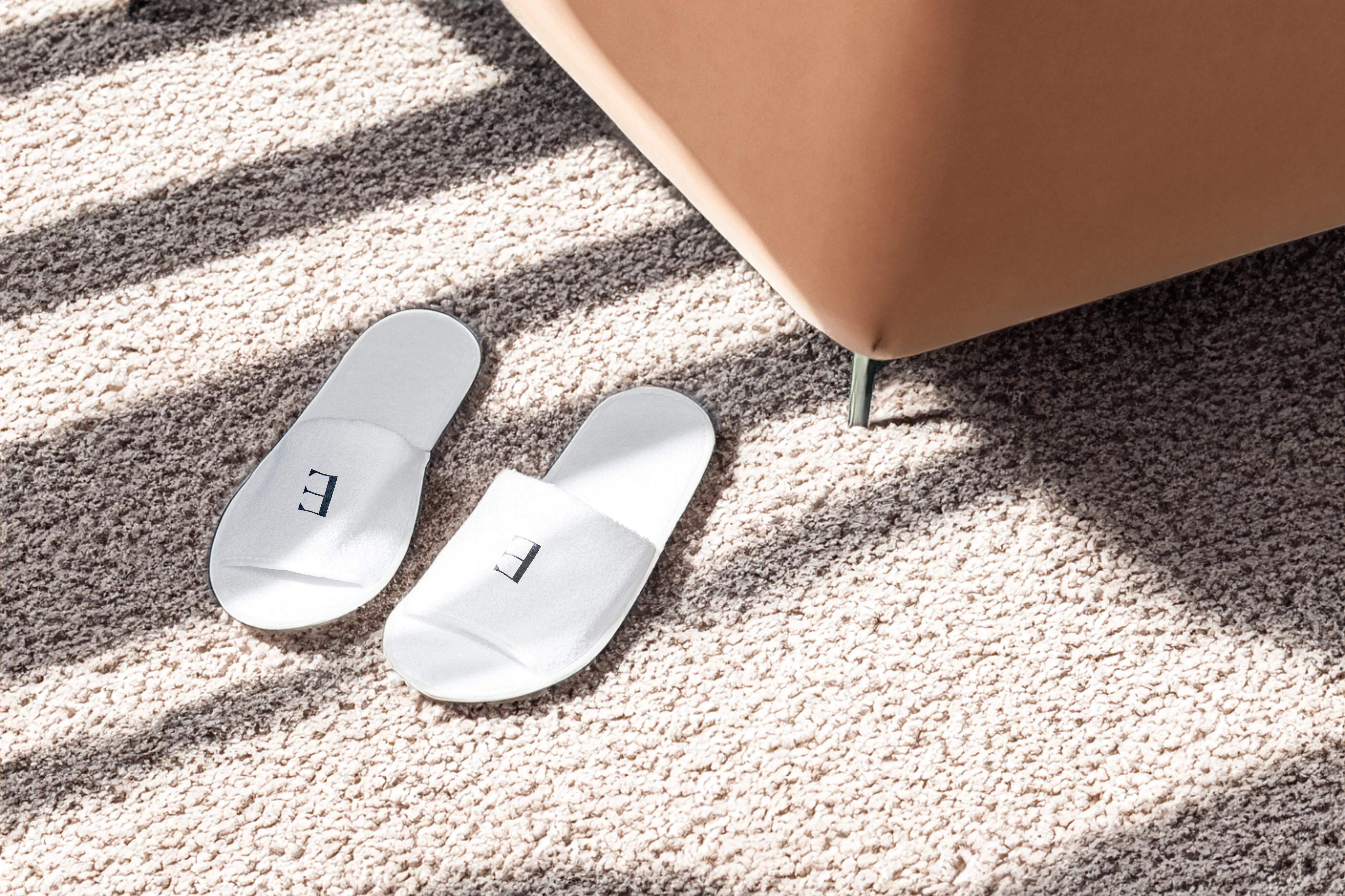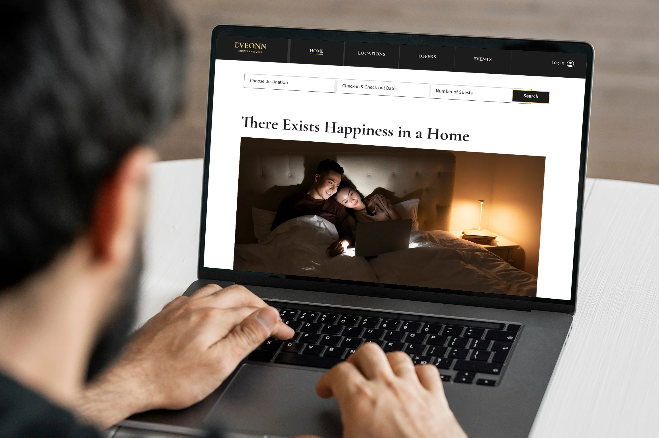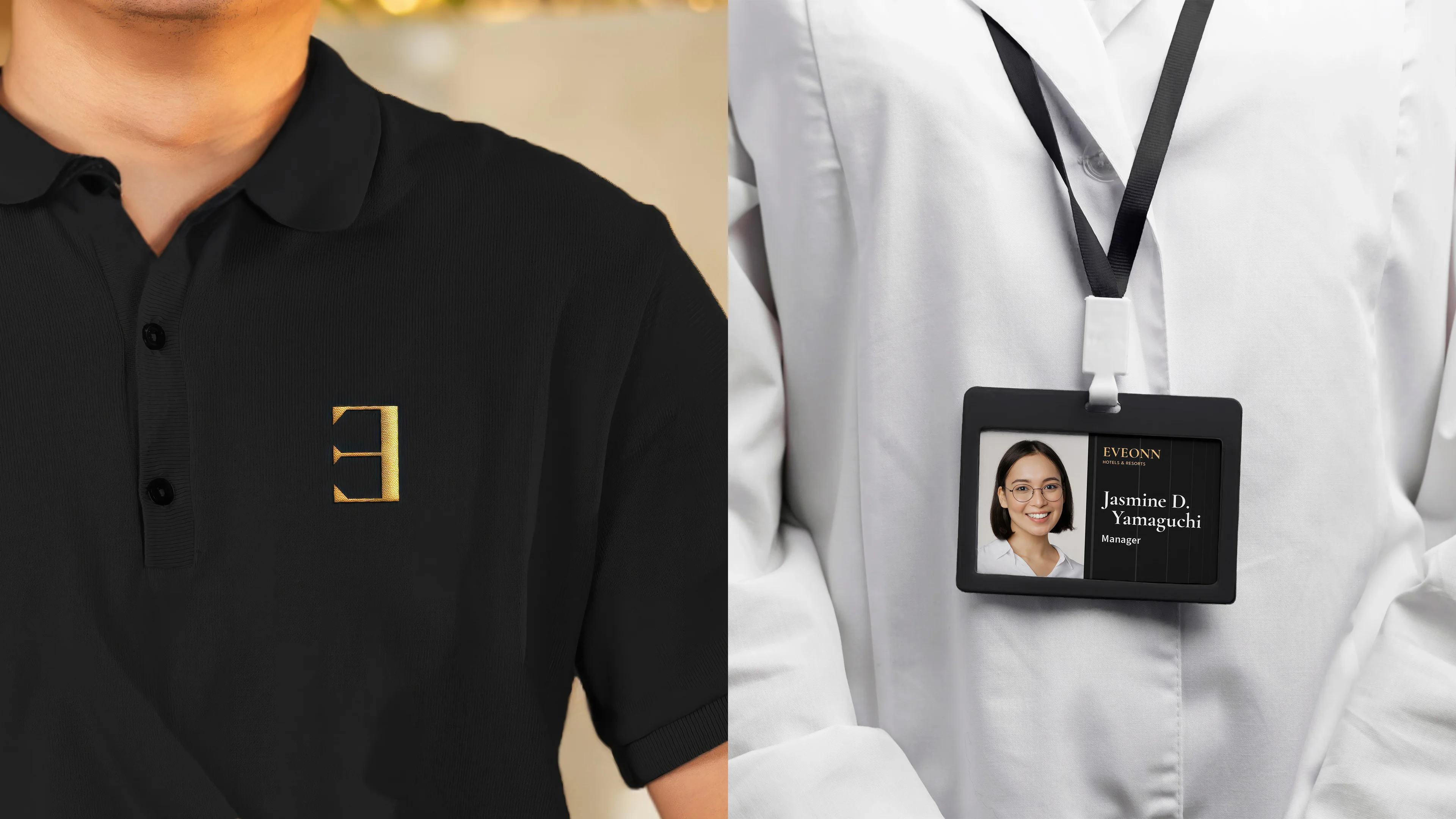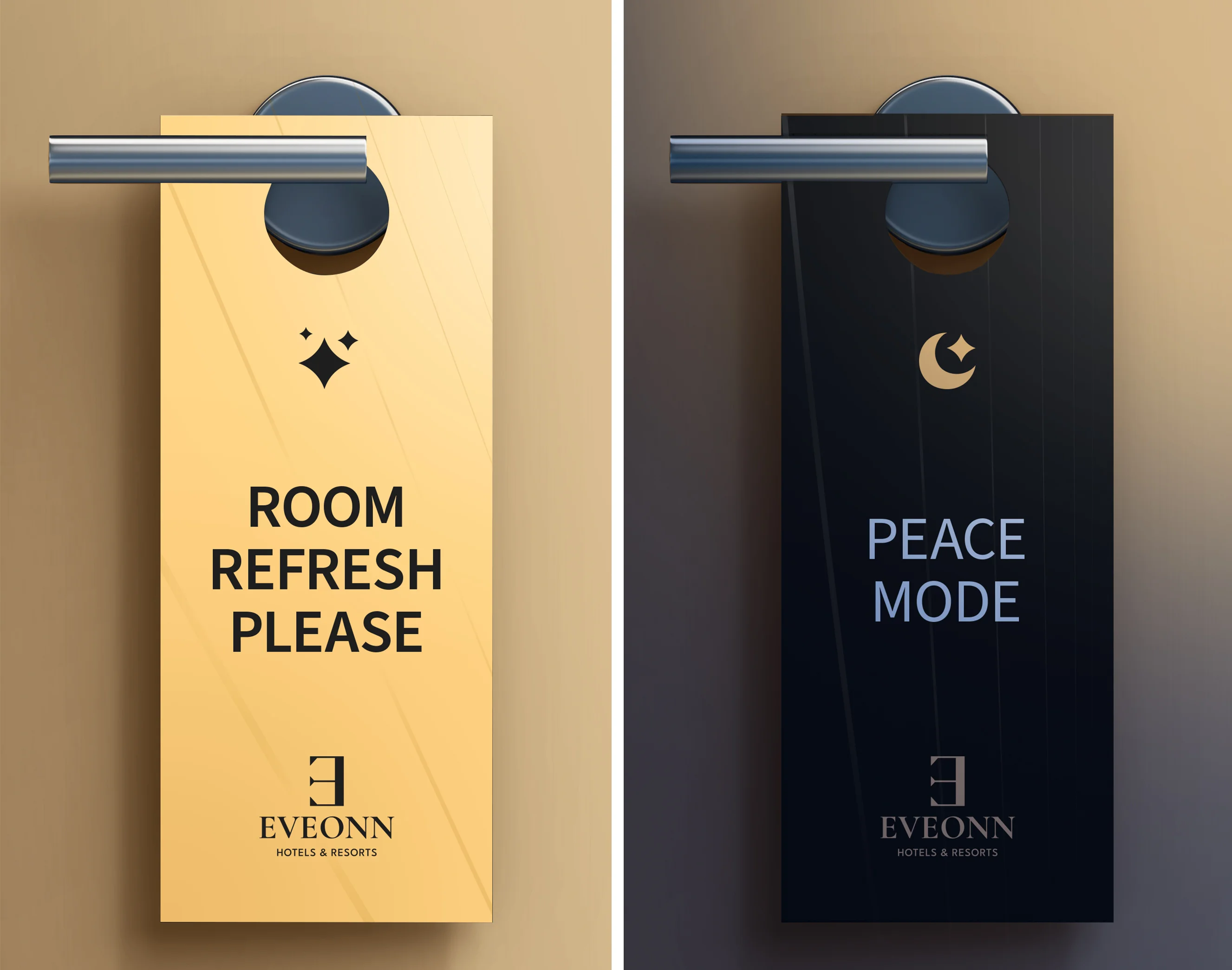 "Ev" means "Home" in Old Turkish. "Onn" means "Happiness" in Estonian. The reversed "E" denotes "There Exists." Together, the name symbolizes "There Exists Happiness in a Home." TTGC built the brand from the ground up for this growing Philippine hotel chain with 10–15 locations, ensuring consistency across every touchpoint — from lobby signage to room amenities.