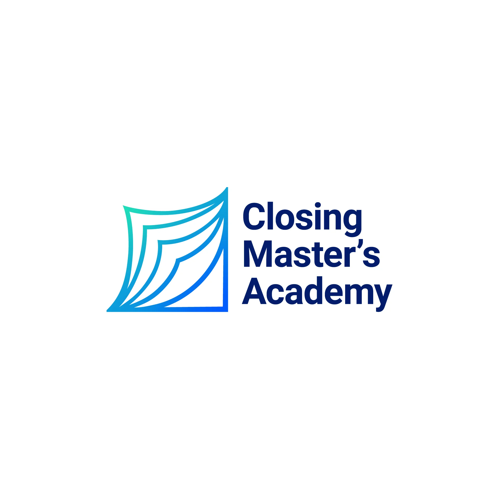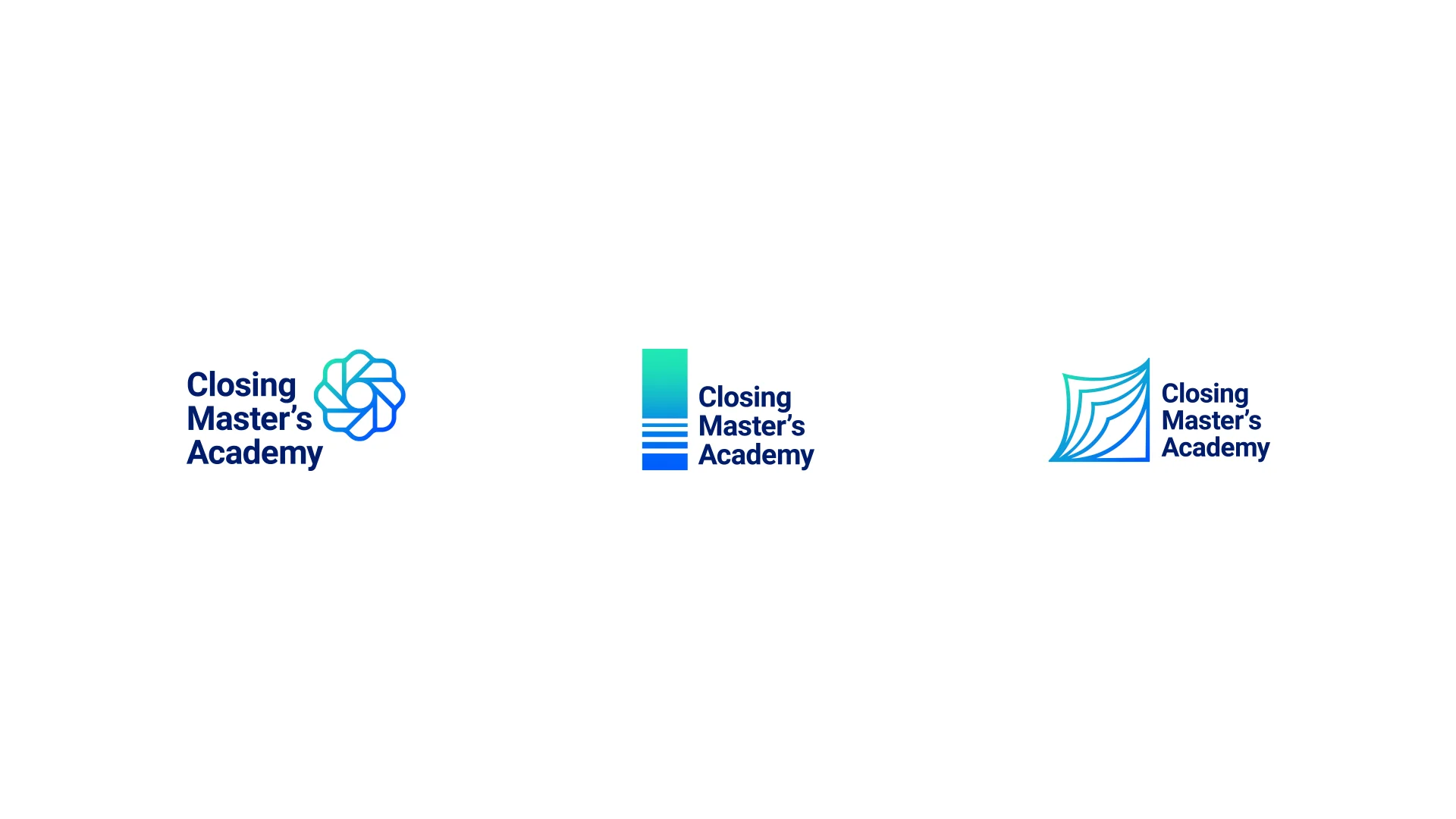 Three logo concepts were presented for the Closing Master's Academy, each taking a different approach to representing education, growth, and mastery.